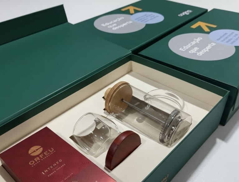 Desenvolvimento de brindes corporativos e promocionais que fortalecem o relacionamento com clientes e colaboradores. Criamos kits personalizados e materiais para campanhas e eventos.